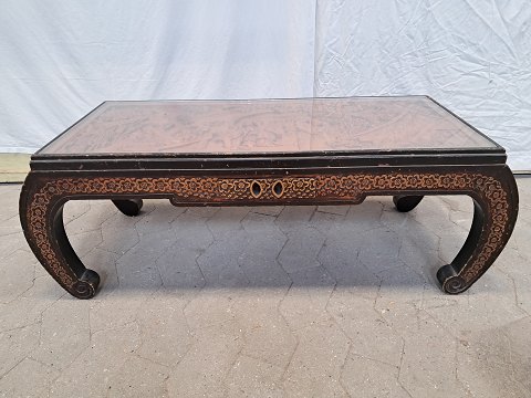 Pyntebord i massivt træ med glasplade, fra 1980erne.