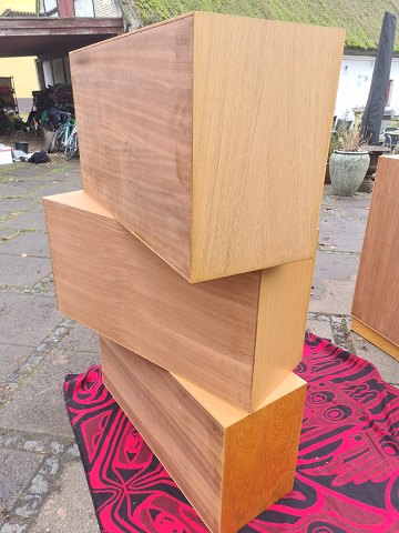 3 bogkasser i finéret eg og med hessian beklædt bagbeklædning. Ydført hos HG Funiture i 1970'erne. Fremstår pæne og velholdte uden de store brugsspor.