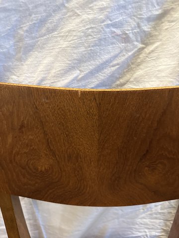 Dansk møbelproducent sæt af 5 spisestuestole i eg m. rygstykke i fineret teak samt sæde betrukket med stof. Fremstillet ca. 1950'erne.